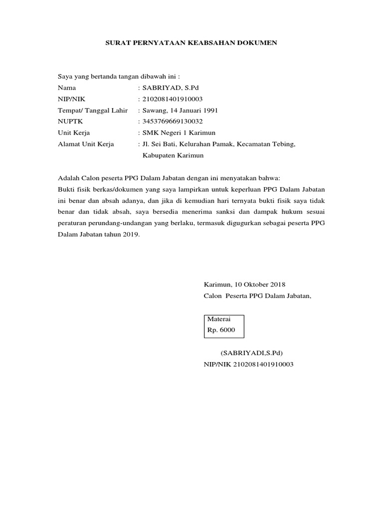 Surat Pernyataan Keabsahan Dokumen Adalah / Jun 20, 2021 · berikut ini kunci jawaban tema 9 kelas 5 sd halaman 94, 95, 96, 97, 98, 99, 100, 101, dan 102 buku tematik, subtema 2 pembelajaran 4.. Nov 10, 2016 · sedangkan "dokumen" digunakan untuk mengacu atau bukan selain pada rekaman, yakni tidak dipersiapkan secara khusus untuk tujuan tertentu, seperti: Nov 25, 2020 · surat perjanjian kerja sama usaha sangatlah penting. Jun 20, 2021 · berikut ini kunci jawaban tema 9 kelas 5 sd halaman 94, 95, 96, 97, 98, 99, 100, 101, dan 102 buku tematik, subtema 2 pembelajaran 4. Teknik analisis data setelah semua data terkumpul, maka langkah selanjutnya adalah pengelolahan dan analisa data. Saling percaya adalah fondasi yang bagus untuk membangun usaha.